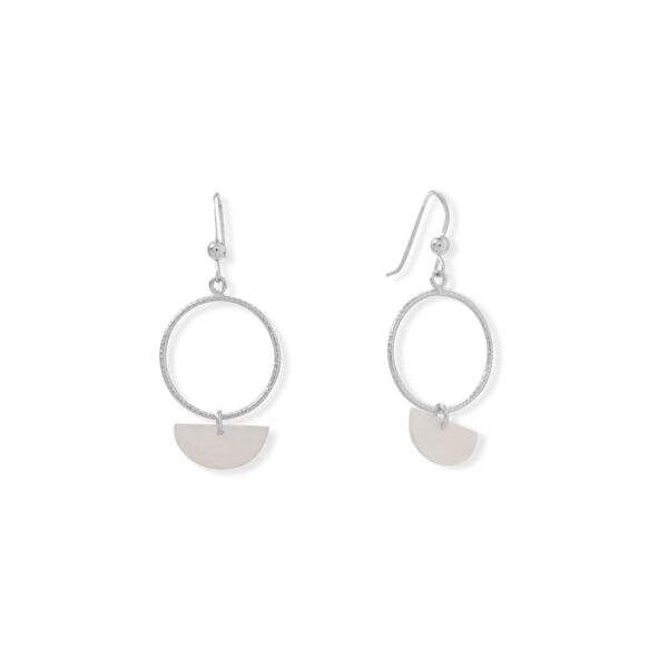 Simple summer classic. Rhodium plated sterling silver french wire earrings feature a diamond cut open circle design with white shell half-moon drops. Shell measures approximately 7.5mm x 14.6mm and earrings have a hanging length of 37.3mm. 925 Sterling Silver